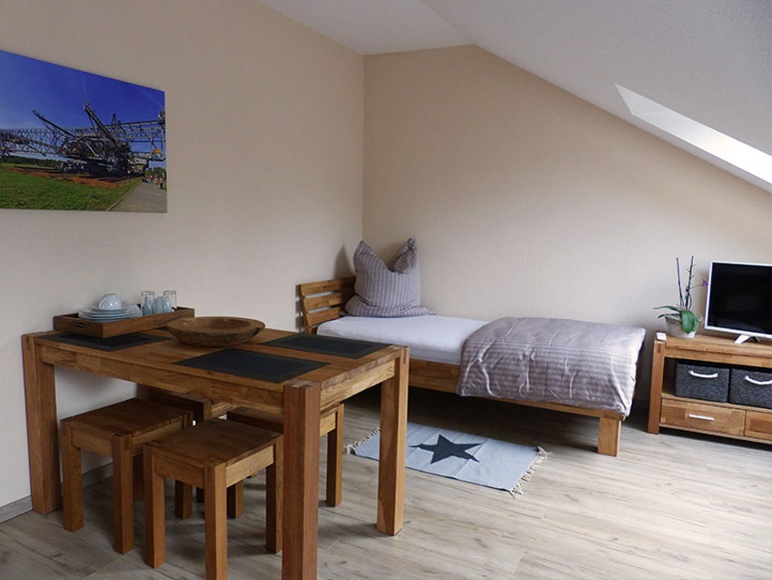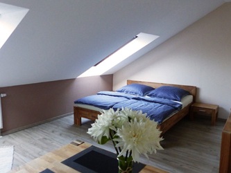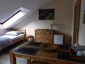 Doppelzimmer im Dachgeschoss mit kombiniertem Wohn- und Schlafbereich und zwei Einzelbetten (zum Doppelbett stellbar)