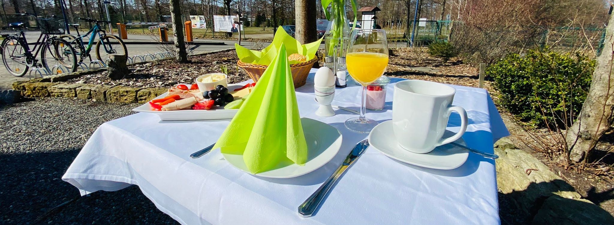 Gern können Sie auf Vorbestellung in unserem Bistro von 8:30 Uhr bis 9:30 Uhr frühstücken. Zur Auswahl stehen zum Beispiel unser Schlemmerfrüstück, Start in den Campingtag oder unser Fitnessfrühstück. Weitere Informationen erhalten Sie hier oder an der Rezeption.